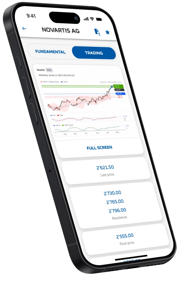With a single login, you can access premium financial research at no cost and also monitor and place your orders through your Cornèrtrader account.